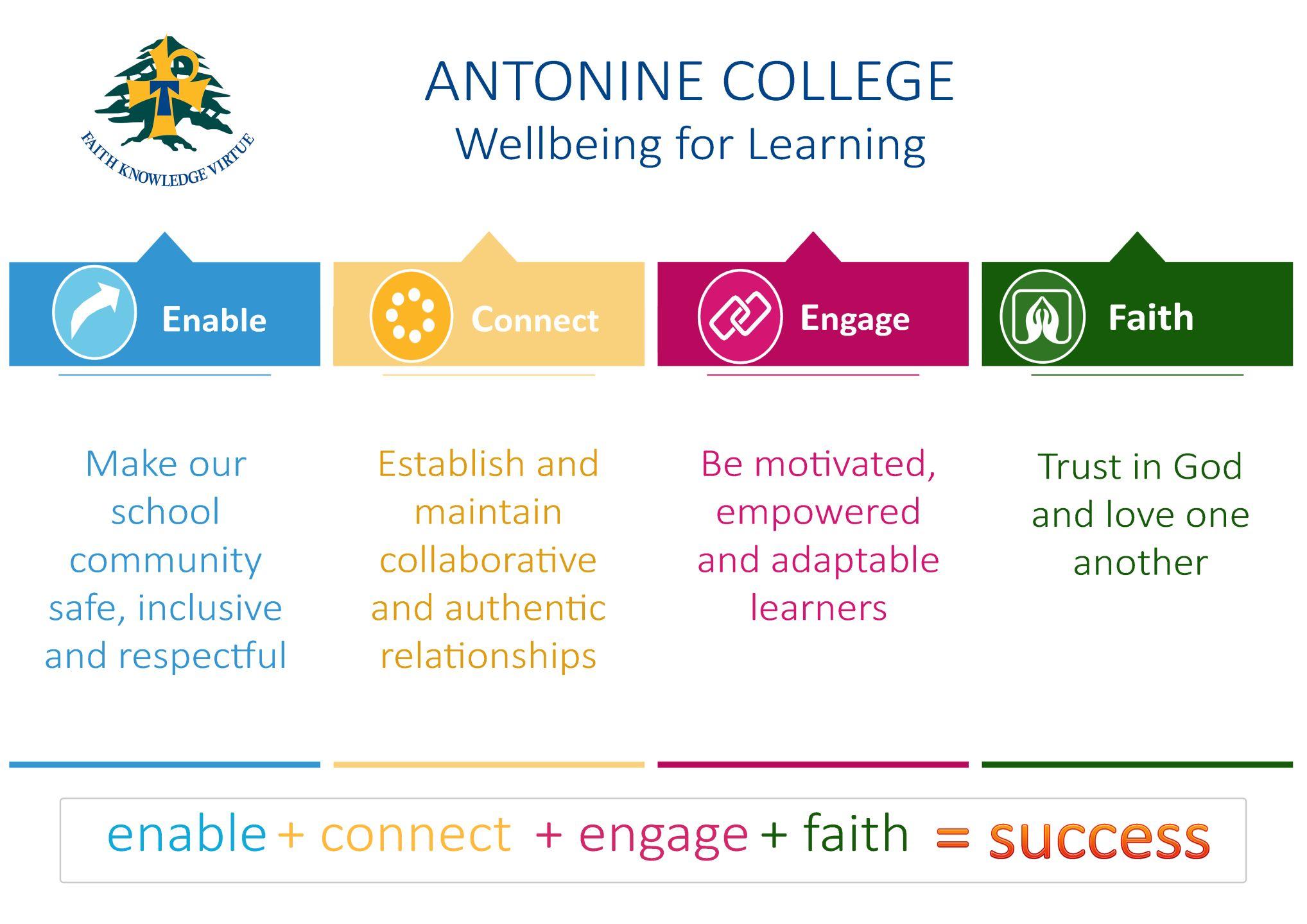 We follow the Wellbeing for Learning framework developed by Melbourne Archdiocese Catholic Schools. Our aim for students is to: